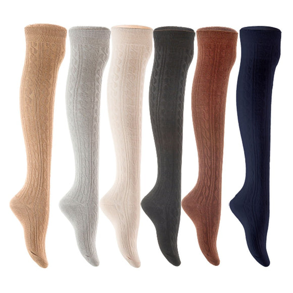 Lian LifeStyle Women's 6 Pair Adorable Comfortable Soft Thigh High Over Knee High Cotton Socks Size 6-9 L1024 (Beige,Light Grey,Cream,Black,Coffee,Navy)