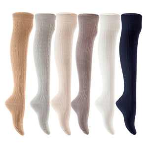 Lian LifeStyle Women's 6 Pair Adorable Comfortable Soft Thigh High Over Knee High Cotton Socks Size 6-9 L1024 (Beige,Light Grey,Cream,Dark Grey,White,Navy)