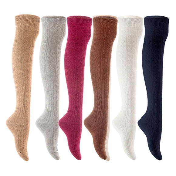 Lian LifeStyle Women's 6 Pair Adorable Comfortable Soft Thigh High Over Knee High Cotton Socks Size 6-9 L1024 (Beige,Light Grey,Wine,Coffee,White,Navy)