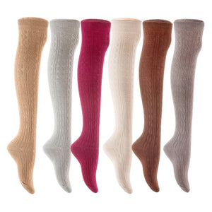 Lian LifeStyle Women's 6 Pair Adorable Comfortable Soft Thigh High Over Knee High Cotton Socks Size 6-9 L1024 (Beige,Light Grey,Wine,Cream,Coffee,Dark Grey)