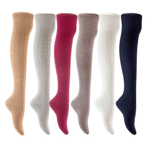 Lian LifeStyle Women's 6 Pair Adorable Comfortable Soft Thigh High Over Knee High Cotton Socks Size 6-9 L1024 (Beige,Light Grey,Wine,Dark Grey,White,Navy)