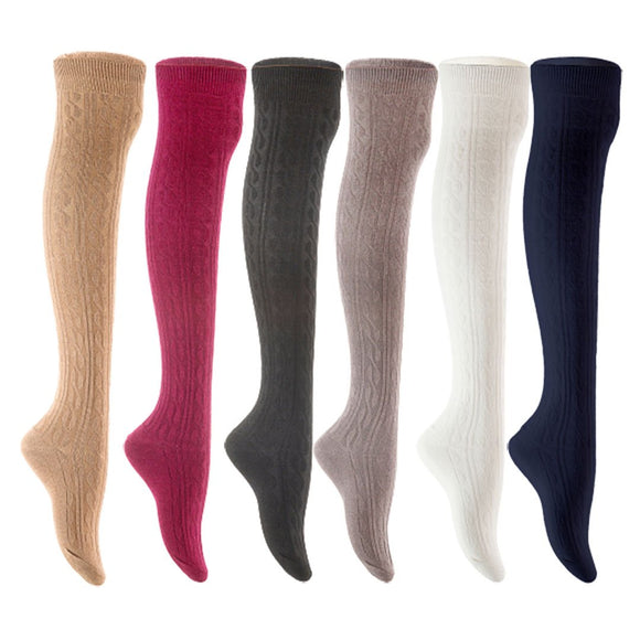 Lian LifeStyle Women's 6 Pair Adorable Comfortable Soft Thigh High Over Knee High Cotton Socks Size 6-9 L1024 (Beige,Wine,Coffee,Dark Grey,White,Navy)