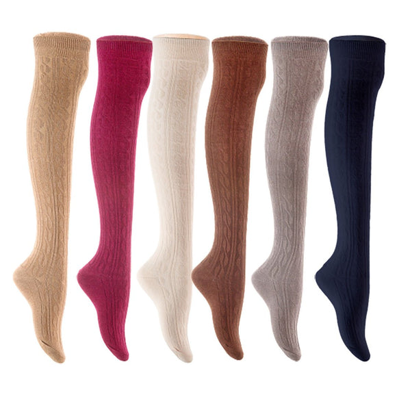Lian LifeStyle Women's 6 Pair Adorable Comfortable Soft Thigh High Over Knee High Cotton Socks Size 6-9 L1024 (Beige,Wine,Cream,Coffee,Dark Grey,Navy)