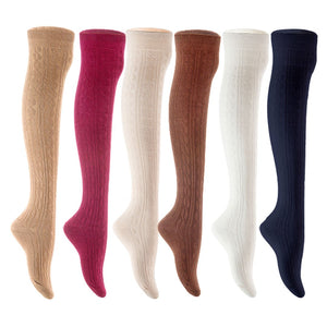 Lian LifeStyle Women's 6 Pair Adorable Comfortable Soft Thigh High Over Knee High Cotton Socks Size 6-9 L1024 (Beige,Wine,Cream,Coffee,White,Navy)