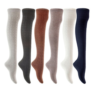 Lian LifeStyle Women's 6 Pair Adorable Comfortable Soft Thigh High Over Knee High Cotton Socks Size 6-9 L1024 (Light Grey,Black,Coffee,Dark Grey,White,Navy)