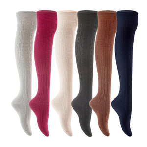 Lian LifeStyle Women's 6 Pair Adorable Comfortable Soft Thigh High Over Knee High Cotton Socks Size 6-9 L1024 (Light Grey,Wine,Cream,Black,Coffee,Navy)