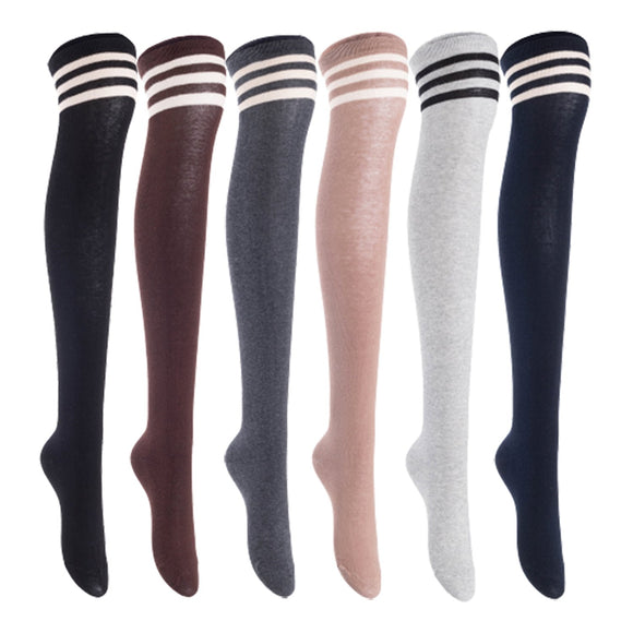 Lian LifeStyle Women's 6 Pairs Adorable Comfortable Soft Thigh High Over Knee High Cotton Socks, Size 6-9, JMYP1022 (Black, Coffee, DarkGrey, Khaki, LightGrey, Navy)