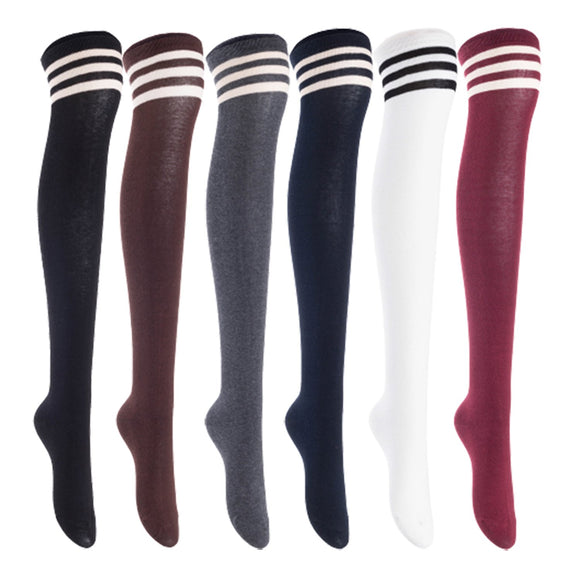 Lian LifeStyle Women's 6 Pairs Adorable Comfortable Soft Thigh High Over Knee High Cotton Socks, Size 6-9, JMYP1022 (Black, Coffee, DarkGrey, Navy, White, Wine)