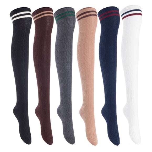 Lian Lifestyle Women's 6 Pairs Incredible Durable Super Soft Unique Over Knee High Thigh High Cotton Socks, Size US 6-9, JMYP1023 (Black, Coffee, Dark Gray, Khaki, Navy, White)