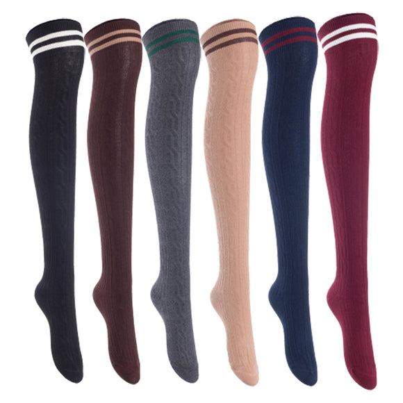 Lian Lifestyle Women's 6 Pairs Incredible Durable Super Soft Unique Over Knee High Thigh High Cotton Socks, Size US 6-9, JMYP1023 (Black, Coffee, Dark Gray, Khaki, Navy, Wine)