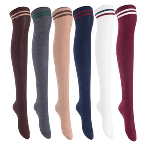 Lian Lifestyle Women's 6 Pairs Incredible Durable Super Soft Unique Over Knee High Thigh High Cotton Socks, Size US 6-9, JMYP1023 (Coffee, Dark Gray, Khaki, Navy, White, Wine)