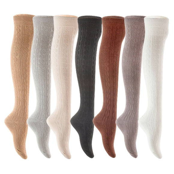 Lian LifeStyle Women's 7 Pair Adorable Comfortable Soft Thigh High Over Knee High Cotton Socks Size 6-9 L1024 (Beige,Light Grey,Cream,Black,Coffee,Dark Grey,White)