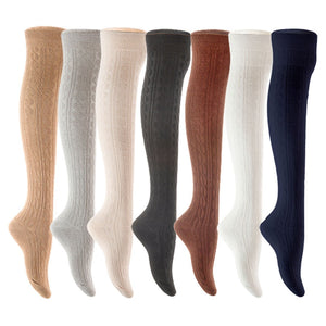 Lian LifeStyle Women's 7 Pair Adorable Comfortable Soft Thigh High Over Knee High Cotton Socks Size 6-9 L1024 (Beige,Light Grey,Cream,Black,Coffee,White,Navy)