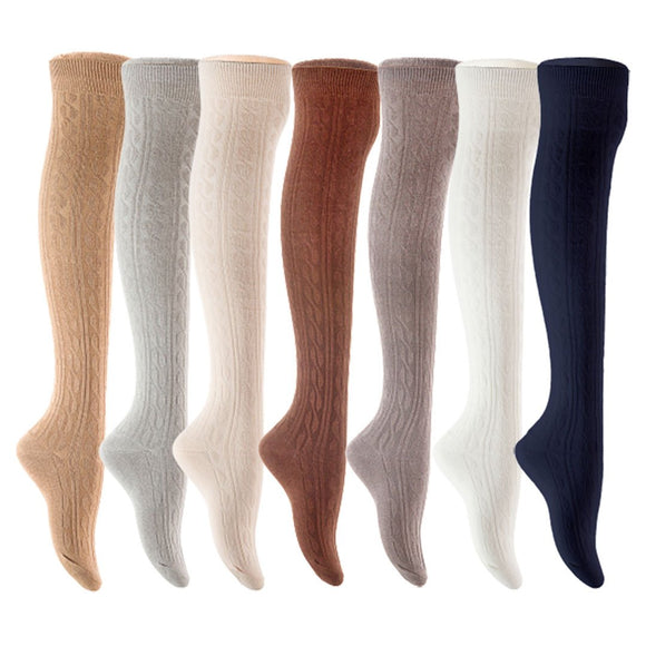 Lian LifeStyle Women's 7 Pair Adorable Comfortable Soft Thigh High Over Knee High Cotton Socks Size 6-9 L1024 (Beige,Light Grey,Cream,Coffee,Dark Grey,White,Navy)