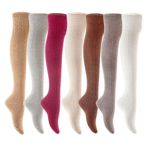 Lian LifeStyle Women's 7 Pair Adorable Comfortable Soft Thigh High Over Knee High Cotton Socks Size 6-9 L1024 (Beige,Light Grey,Wine,Cream,Coffee,Dark Grey,White)