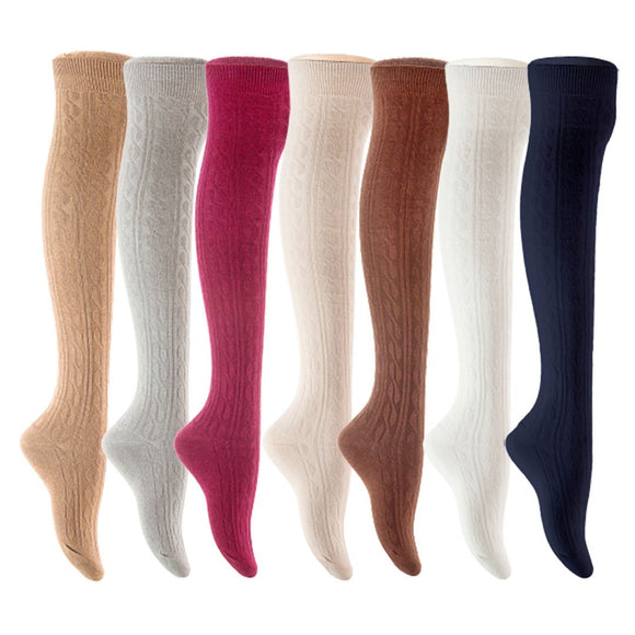Lian LifeStyle Women's 7 Pair Adorable Comfortable Soft Thigh High Over Knee High Cotton Socks Size 6-9 L1024 (Beige,Light Grey,Wine,Cream,Coffee,White,Navy)