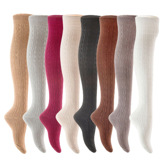 Lian LifeStyle Women's 8 Pair Adorable Comfortable Soft Thigh High Over Knee High Cotton Socks Size 6-9 L1024 (Beige,Light Grey,Wine,Cream,Black,Coffee,Dark Grey,White)