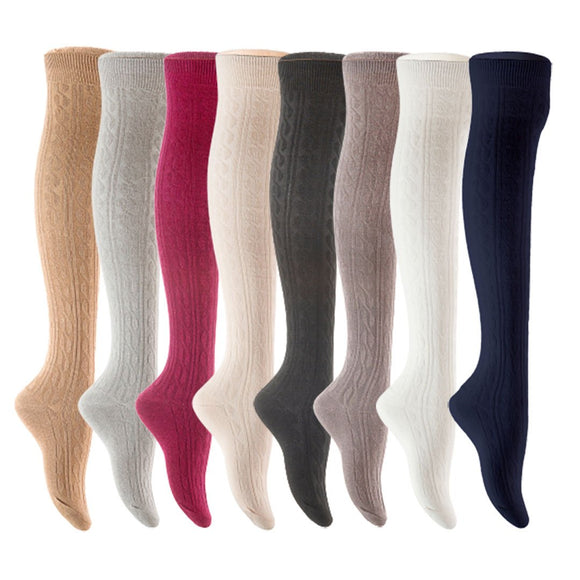 Lian LifeStyle Women's 8 Pair Adorable Comfortable Soft Thigh High Over Knee High Cotton Socks Size 6-9 L1024 (Beige,Light Grey,Wine,Cream,Black,Dark Grey,White,Navy)