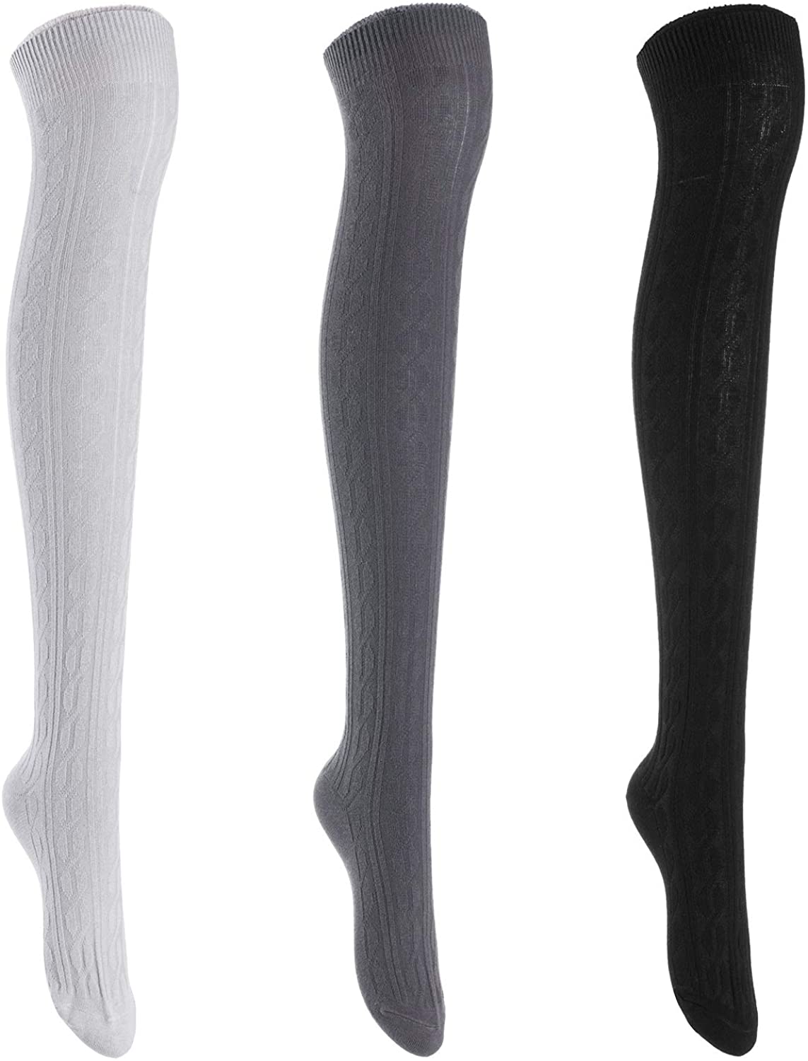 Lian LifeStyle Women's Teen Girl's 3 Pairs Adorable Comfortable Soft Thigh High Over Knee High Cotton Socks
