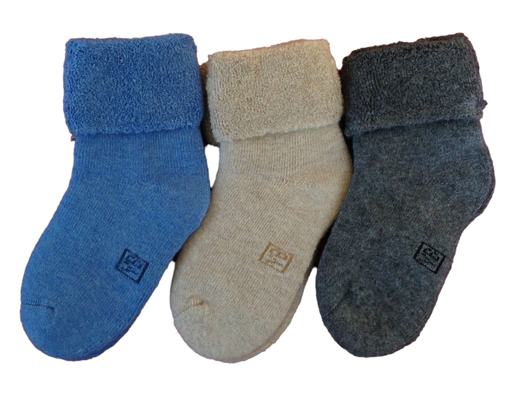 Lian Style 6 Pairs Pack Children Thick Wool Blend Crew Socks Plain 0M-6M (Blue,Gray,Beige)
