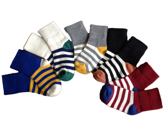 These well crafted socks for boys use only the most exquisite but durable and comfortable type cotton- kid socks that guarantee comfort for your little ones! They are soft to the touch youth socks and gentle to your child's skin for a never ending comfort. Let your child show off these cool socks that easily match any footwear of choice. Run, bike or play any sport in extreme comfort and style. But who says your child needs a sport to wear them? They are a staple of its own. No quality compromised with these boys cotton socks!
