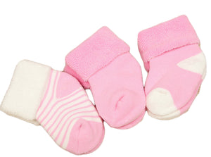 Lian Style Unisex Children 3 Pairs Pack Combed Cotton Crew Socks 12M-24M(Pink)