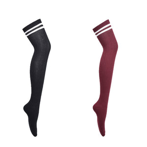 Lian Style Women's 2 Pairs Incredible Durable Super Soft Unique Over Knee High Thigh High Cotton Socks Size 6-9 J1023 (Black, Wine)