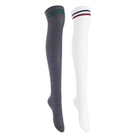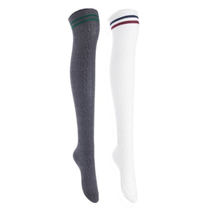 Lian Style Women's 2 Pairs Incredible Durable Super Soft Unique Over Knee High Thigh High Cotton Socks Size 6-9 J1023 (Dark Grey, White)