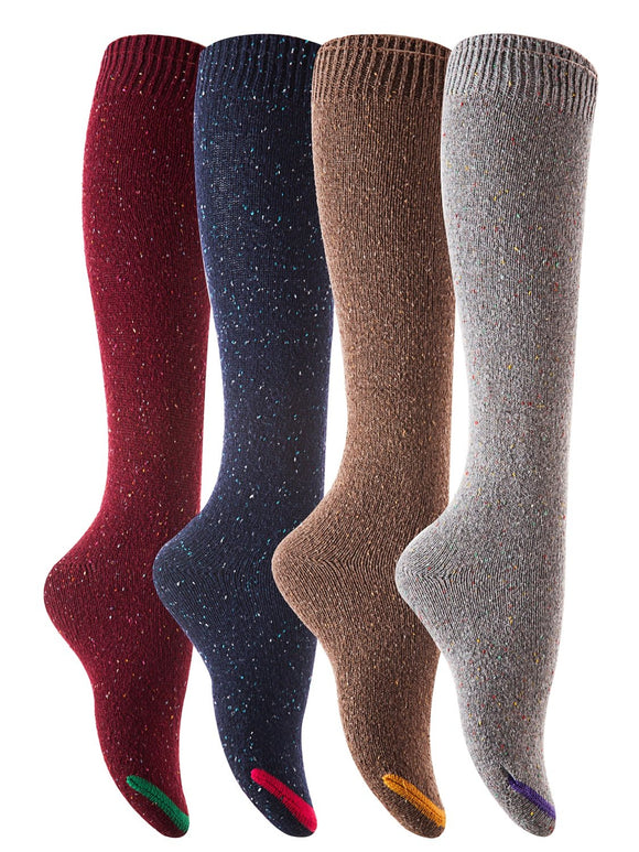 Lian Style Women's 4 Pairs Pack Knee-high Cotton Boot Socks 6-9 Style 8212-3 (4 Color w/o Black)