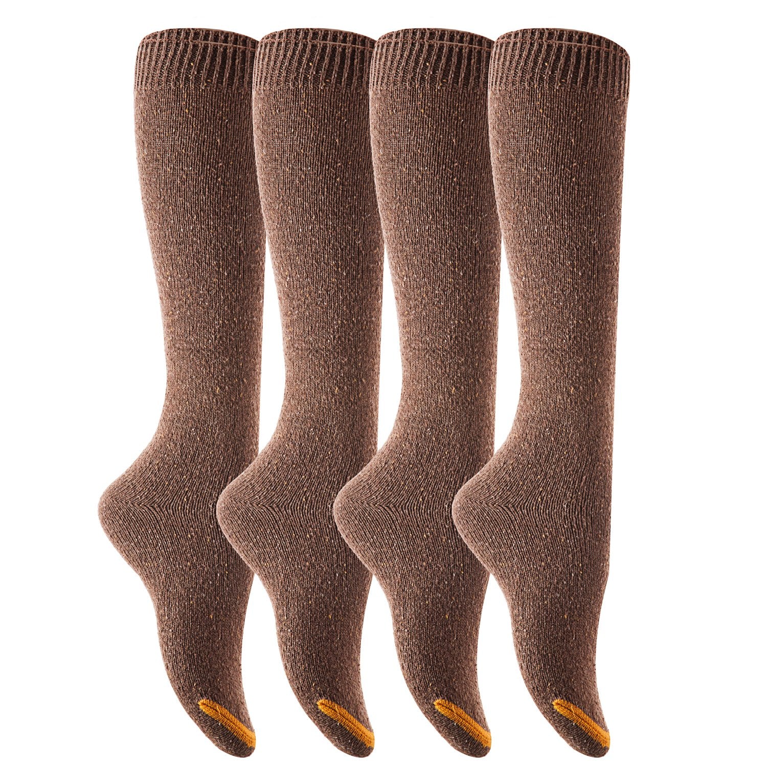 Lian LifeStyle Women's 4 Pairs Awesome Breathable Fancy and Cozy Knee High Cotton Boot Socks Size 6-9 (Coffee)