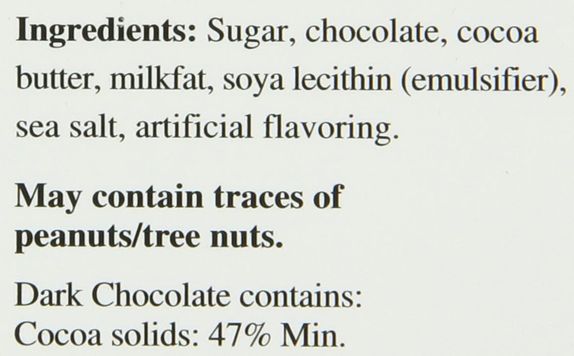 The complexity of dark chocolate is enhanced by the addition of Fleur de Sel, a premium French sea salt.