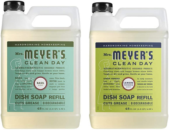 Liquid Dish Soap Refill, 1 Pack Basil, 1 Pack Lemon Verbena, 48 OZ each