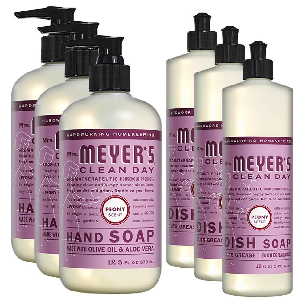 Liquid Hand Soap and Liquid Dish Soap Combo 3 Packs Liquid Hand Soap 12.5 Fl oz & 3 Packs Dish Soap 16 Fl oz, Peony Scent