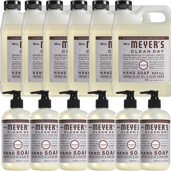 Liquid Hand Soap and Liquid Hand Soap Refil Combo, 6 Pack Liquid Hand Soap 12.5 Fl OZ, 6 Pack hand Soap Refill 33 Fl OZ, Lavender Scent