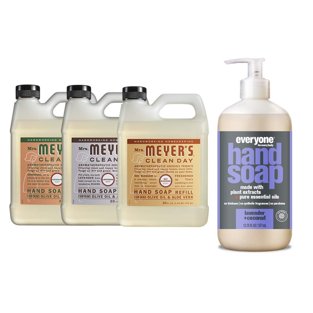 Liquid Hand Soap Refill, 1 Pack Geranium, 1 Pack Lavender, 1 Pack Oat Blossom, 33 OZ each include 1, 12.75 OZ Bottle of Hand Soap Lavender + Coconut