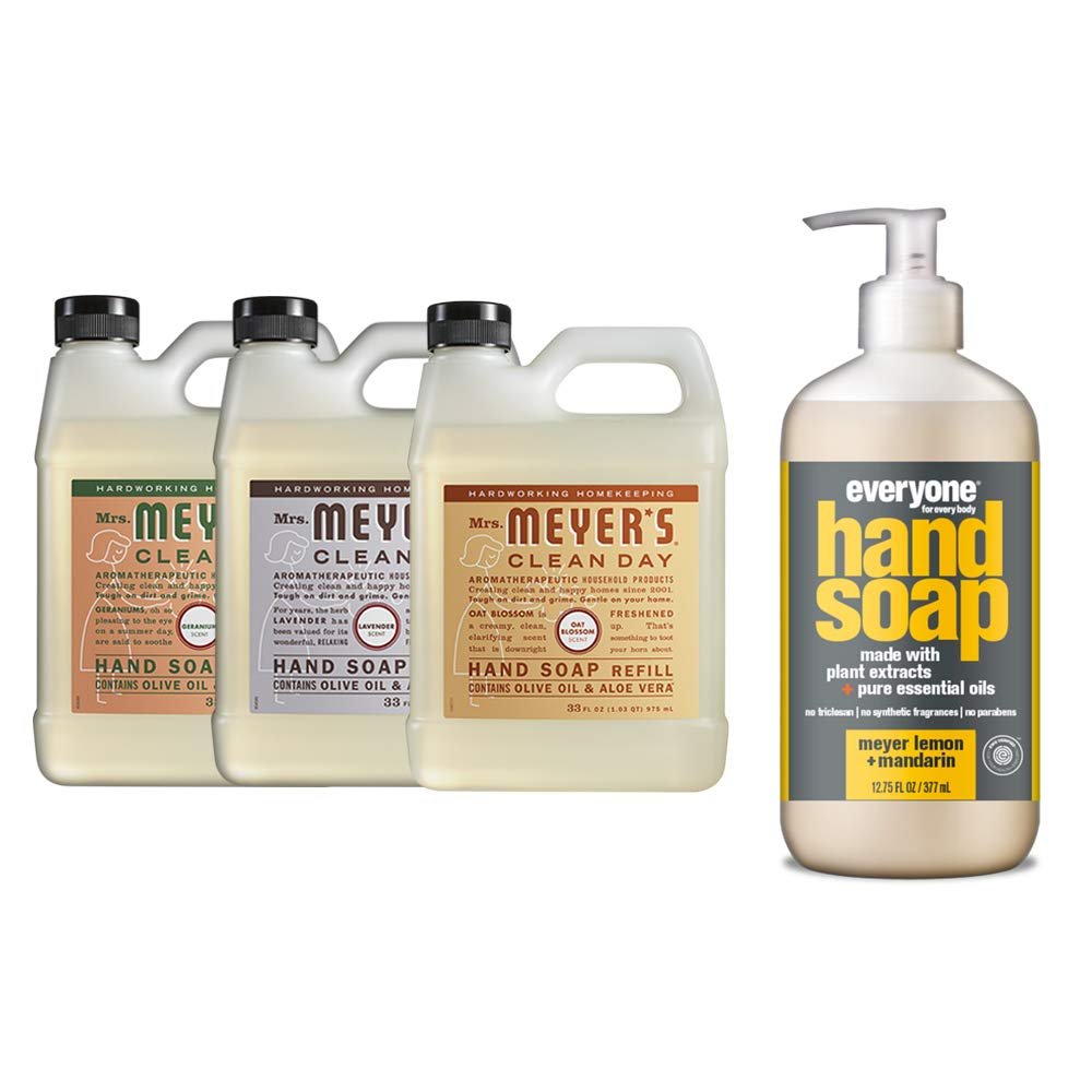 Liquid Hand Soap Refill, 1 Pack Geranium, 1 Pack Lavender, 1 Pack Oat Blossom, 33 OZ each include 1, 12.75 OZ Bottle of Hand Soap Meyer Lemon
