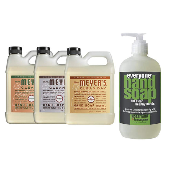 Liquid Hand Soap Refill, 1 Pack Geranium, 1 Pack Lavender, 1 Pack Oat Blossom, 33 OZ each include 1, 12.75 OZ Bottle of Hand Soap Spearmint + Lemongrass