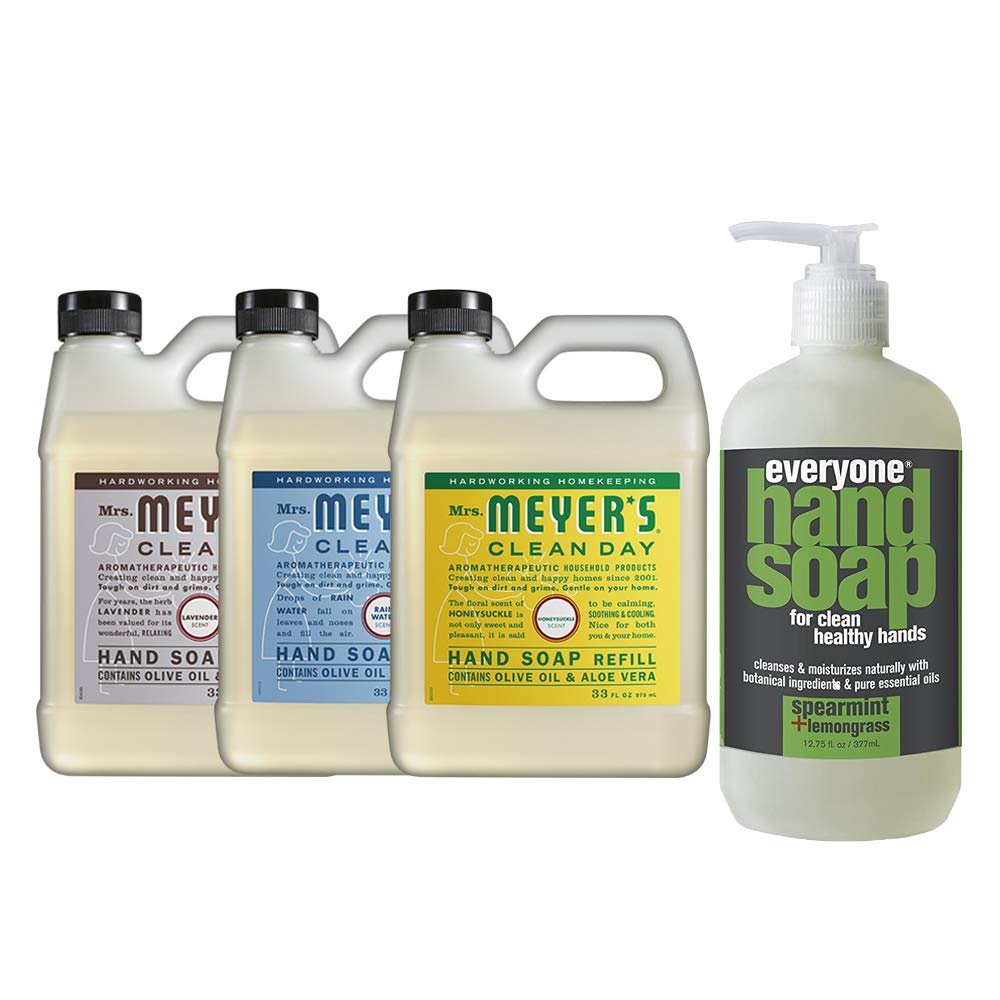 Liquid Hand Soap Refill, 1 Pack Lavender, 1 Pack Rain water, 1 Pack Honey Suckle, 33 OZ each include 1, 12.75 OZ Bottle of Hand Soap Spearmint + Lemongrass