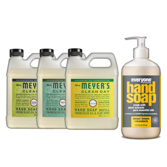 Liquid Hand Soap Refill, 1 Pack Lemon Verbena, 1 Pack Basil, 1 Pack Honey Suckle, 33 OZ each include 1, 12.75 OZ Bottle of Hand Soap Meyer Lemon