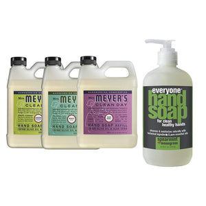 Liquid Hand Soap Refill, 1 Pack Lemon Verbena, 1 Pack Basil, 1 Pack Plum Berry, 33 OZ each include 1, 12.75 OZ Bottle of Hand Soap Spearmint + Lemongrass