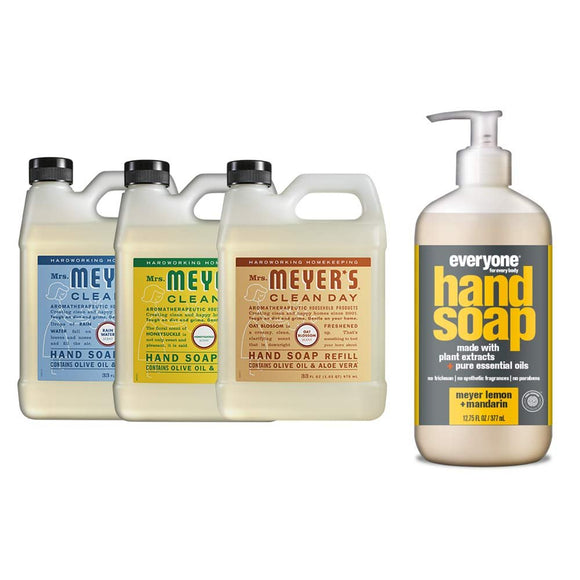 Liquid Hand Soap Refill, 1 Pack Rain water, 1 Pack Honey Suckle, 1 Pack Oat Blossom, 33 OZ each include 1, 12.75 OZ Bottle of Hand Soap Meyer Lemon