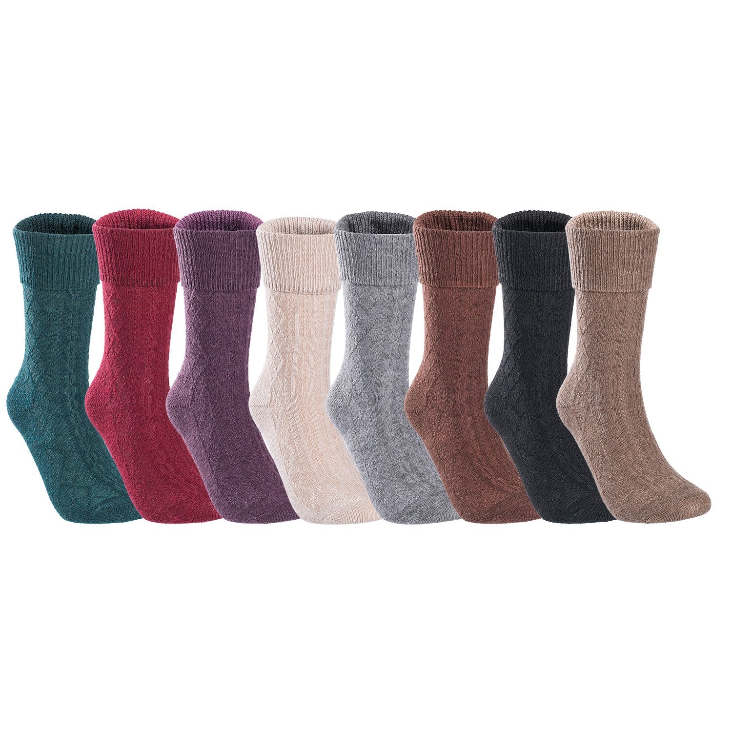 - LONG LASTING SOCKS: Solid seamless pack of female socks with enhanced durability that will not deform or color fade. Take them camping, cycling, hiking or when simply sleeping. Fluffy socks, made with quality thick wool, for long time stressful wearing.