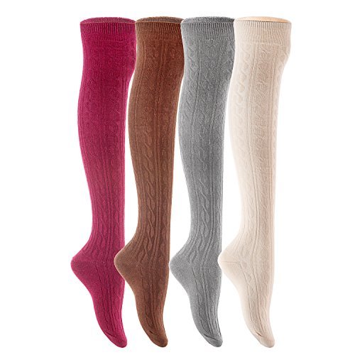 - Cotton Stretchy Thigh High Cotton Socks : These thigh high socks are made of a nice blend of cotton & stretchy yarn, which is very breathable and stretchy at the same time. So, it can be worn by people of various shapes, sizes and height. They go up high nicely, stay up well. These fashion winter thigh high socks are very suitable for peeking out of boots to make you look more beautiful and stylish all day long.