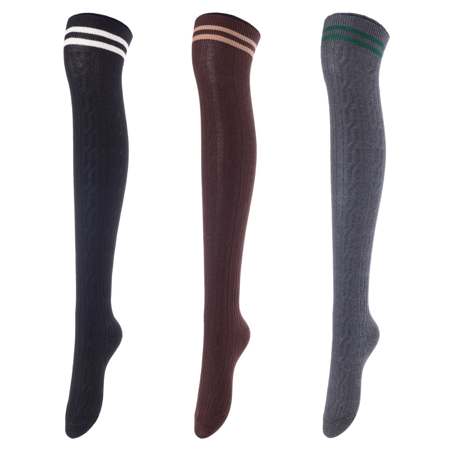 Lovely Annie Big Girl's Women's 3 Pairs Incredible Durable Super Soft Unique Over Knee High Thigh High Cotton Socks Size 6-9 A1023(Assorted)