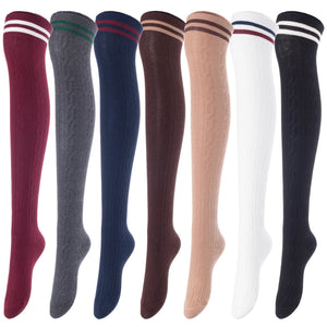 Lovely Annie Big Girl's Women's 3 Pairs Incredible Durable Super Soft Unique Over Knee High Thigh High Cotton Socks Size 6-9 A1023(Random)