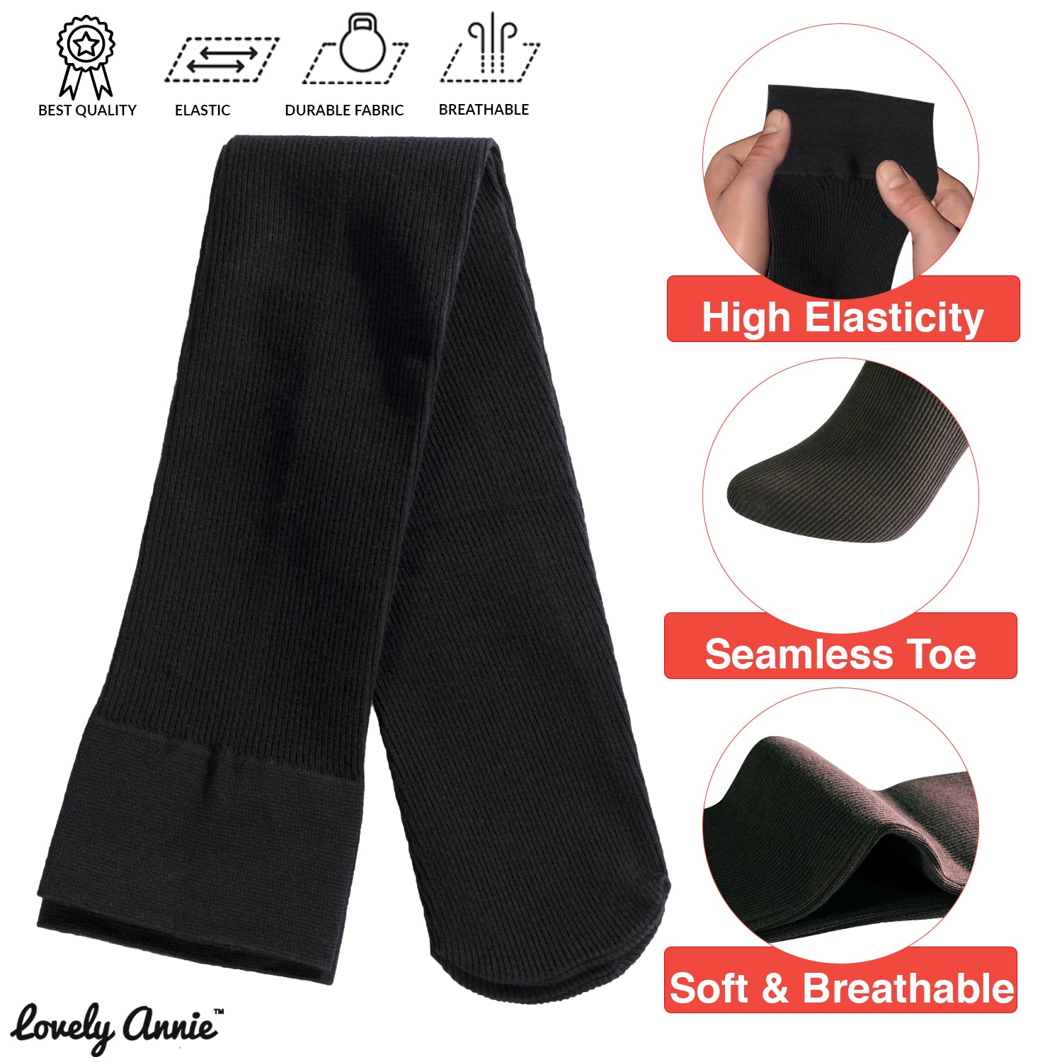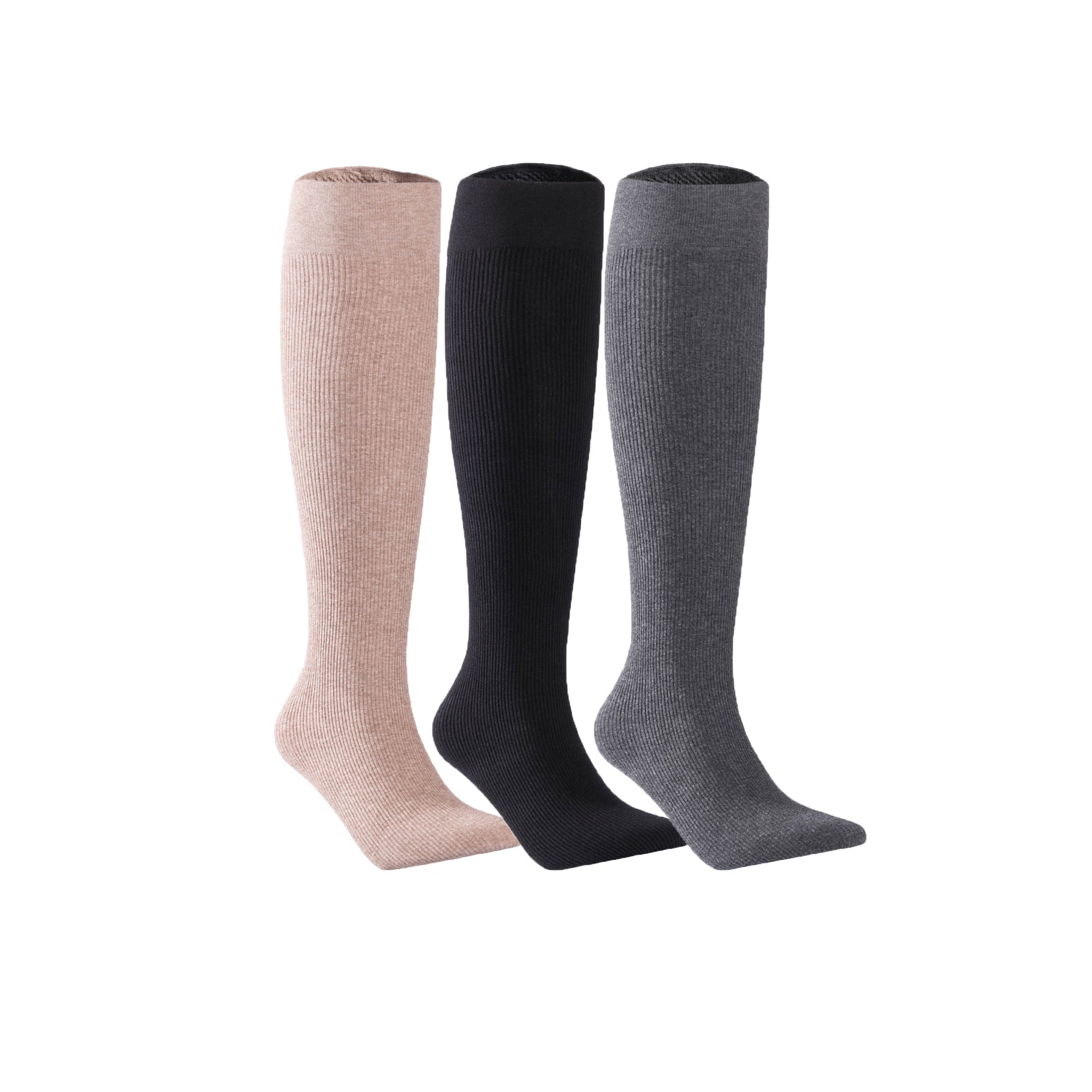 Lovely Annie Big Girl's Women's 3 Pairs Remarkable Fancy Thigh High Cotton Boot Socks L1888 Size 5-11 3P3C-1(Black, Dark Grey, Wheat)
