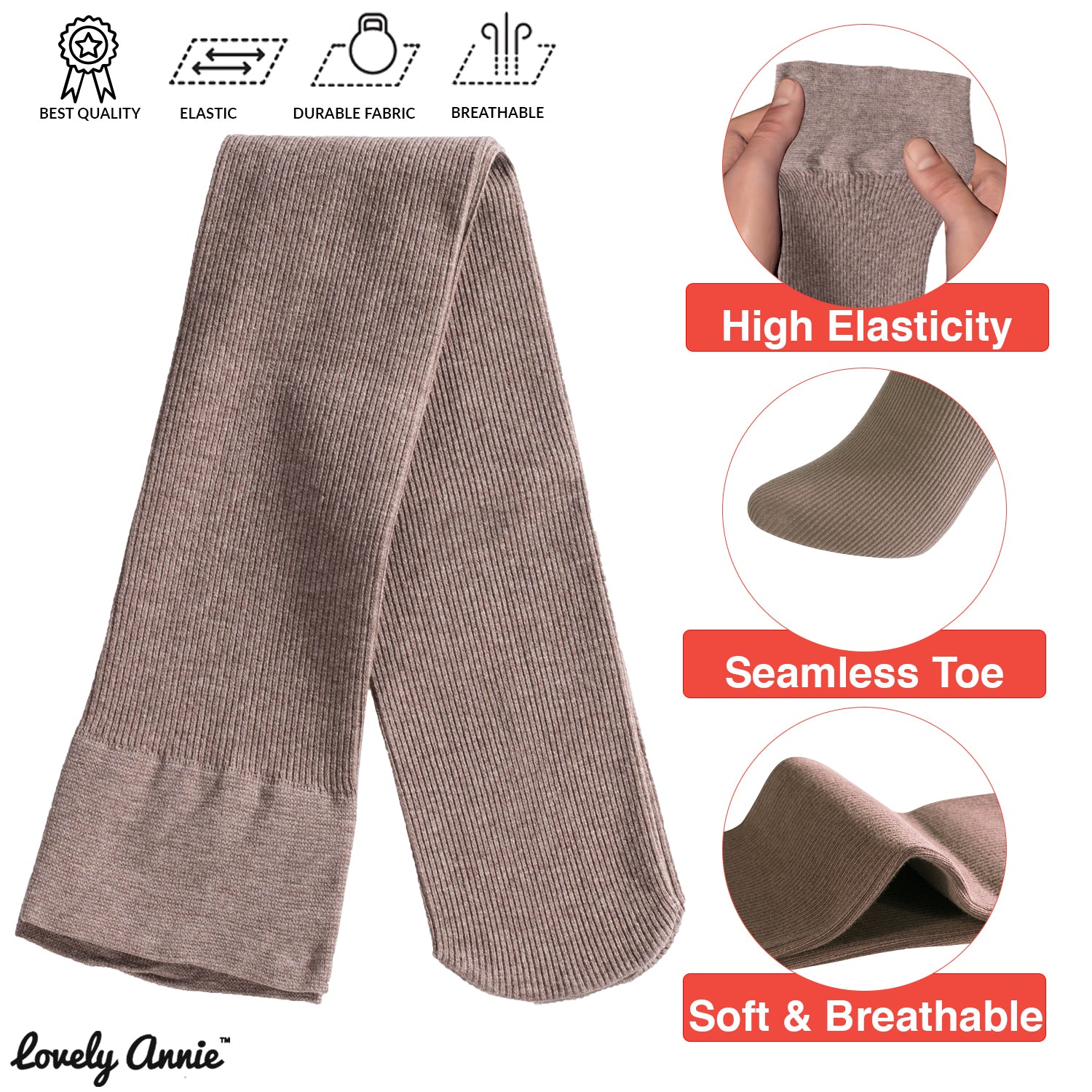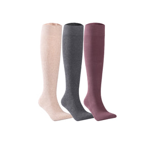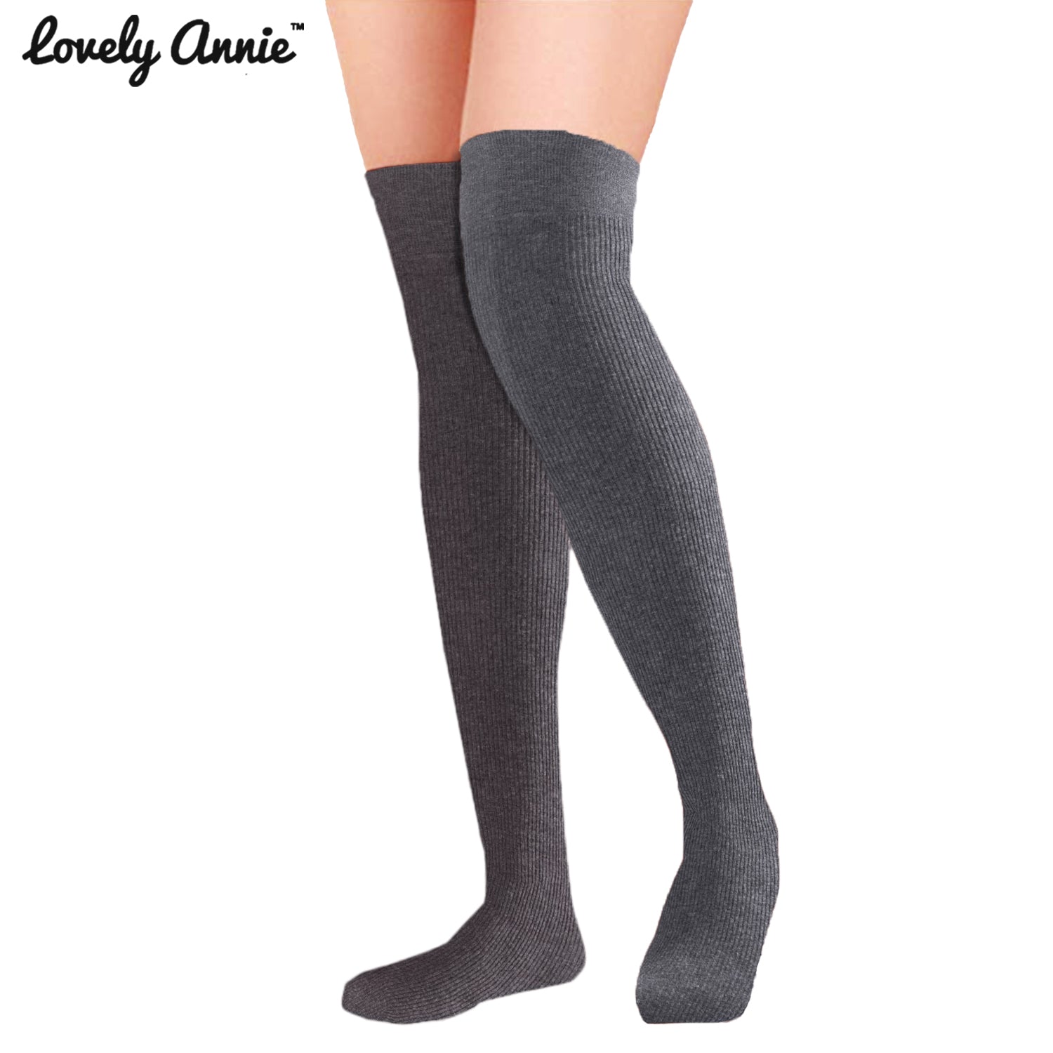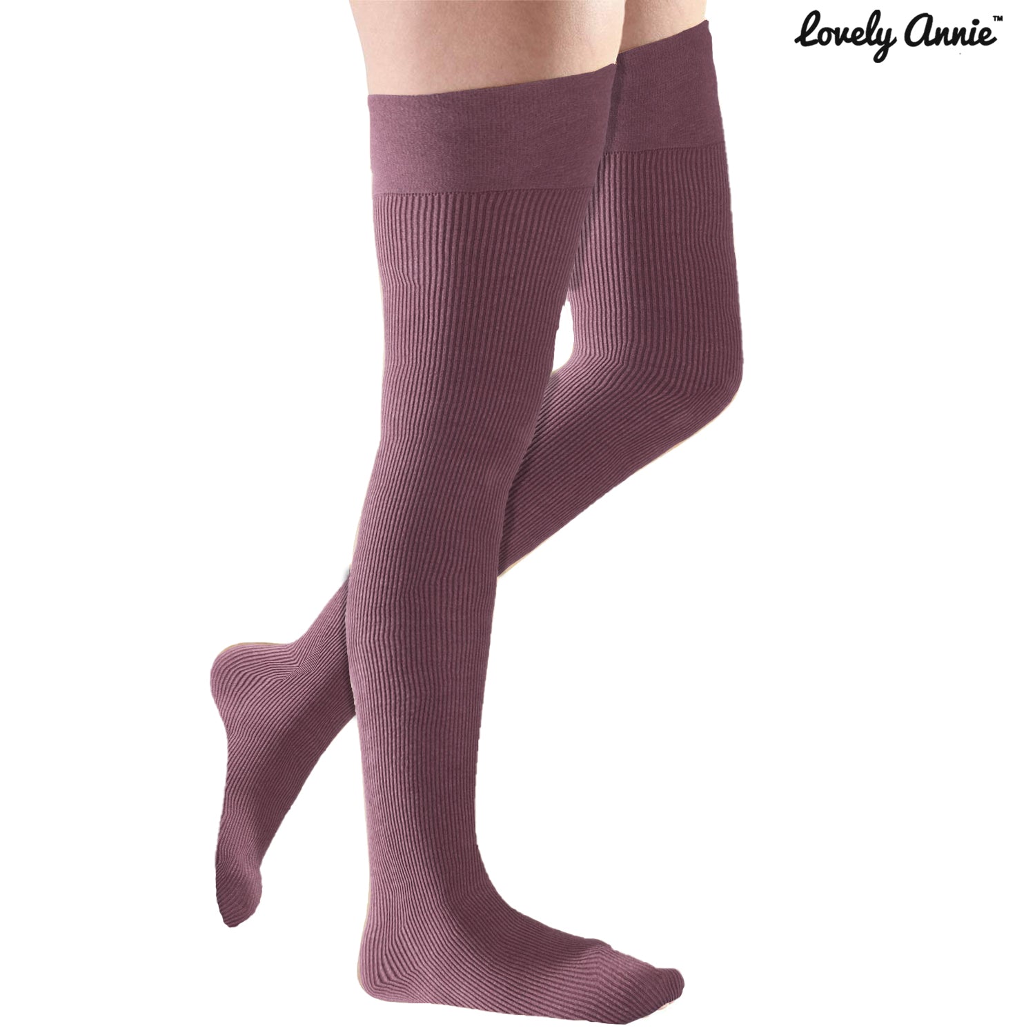 Lovely Annie Big Girl's Women's 3 Pairs Remarkable Fancy Thigh High Cotton Boot Socks L1888 Size 5-11 3P3C-2(Dark Grey, Wheat,Orchid)