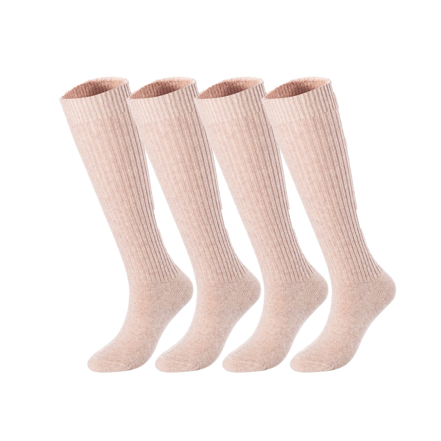 Lovely Annie Big Girl's & Women's 4 Pairs Knee High Wool Socks | Comfy, Cozy and Fancy Leg Warmer Stockings AFS05 Size L/XL(Beige)
