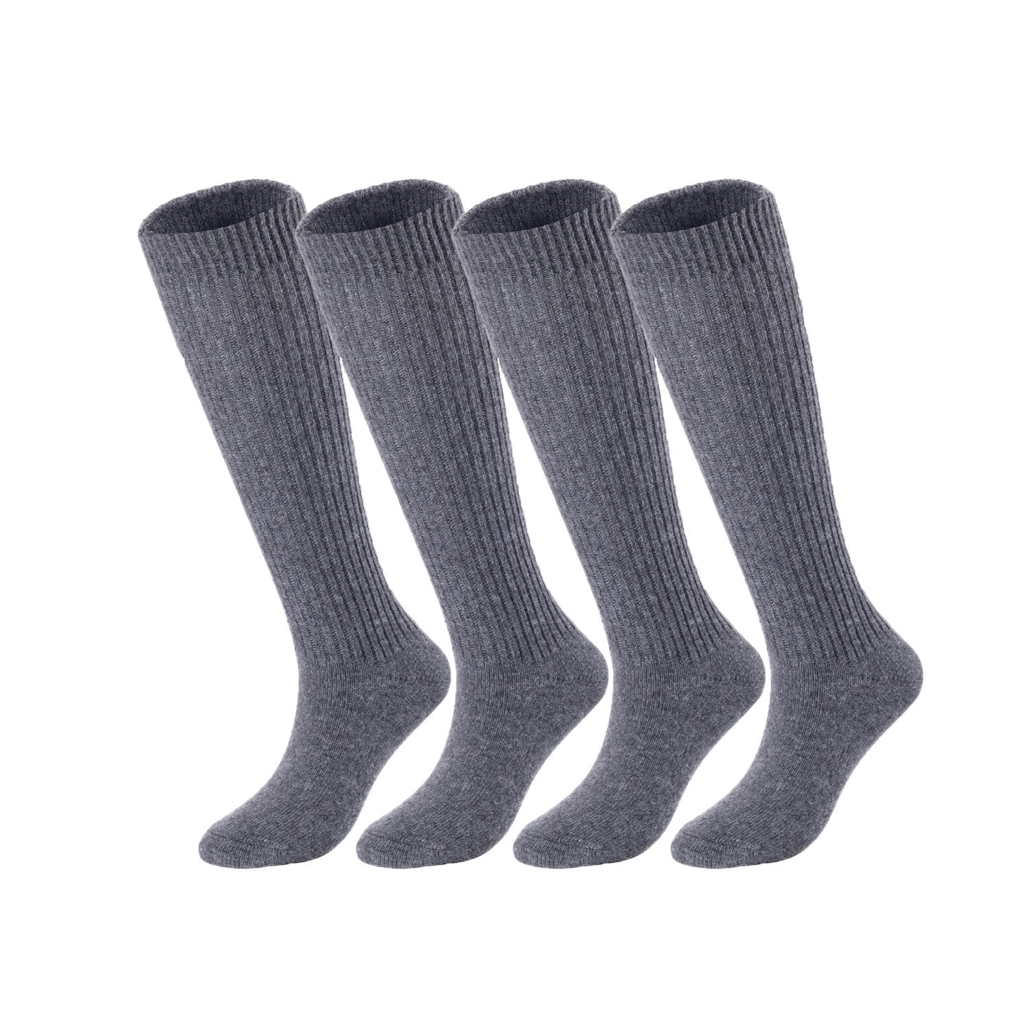 Lovely Annie Big Girl's & Women's 4 Pairs Knee High Wool Socks | Comfy, Cozy and Fancy Leg Warmer Stockings AFS05 Size L/XL(Grey)