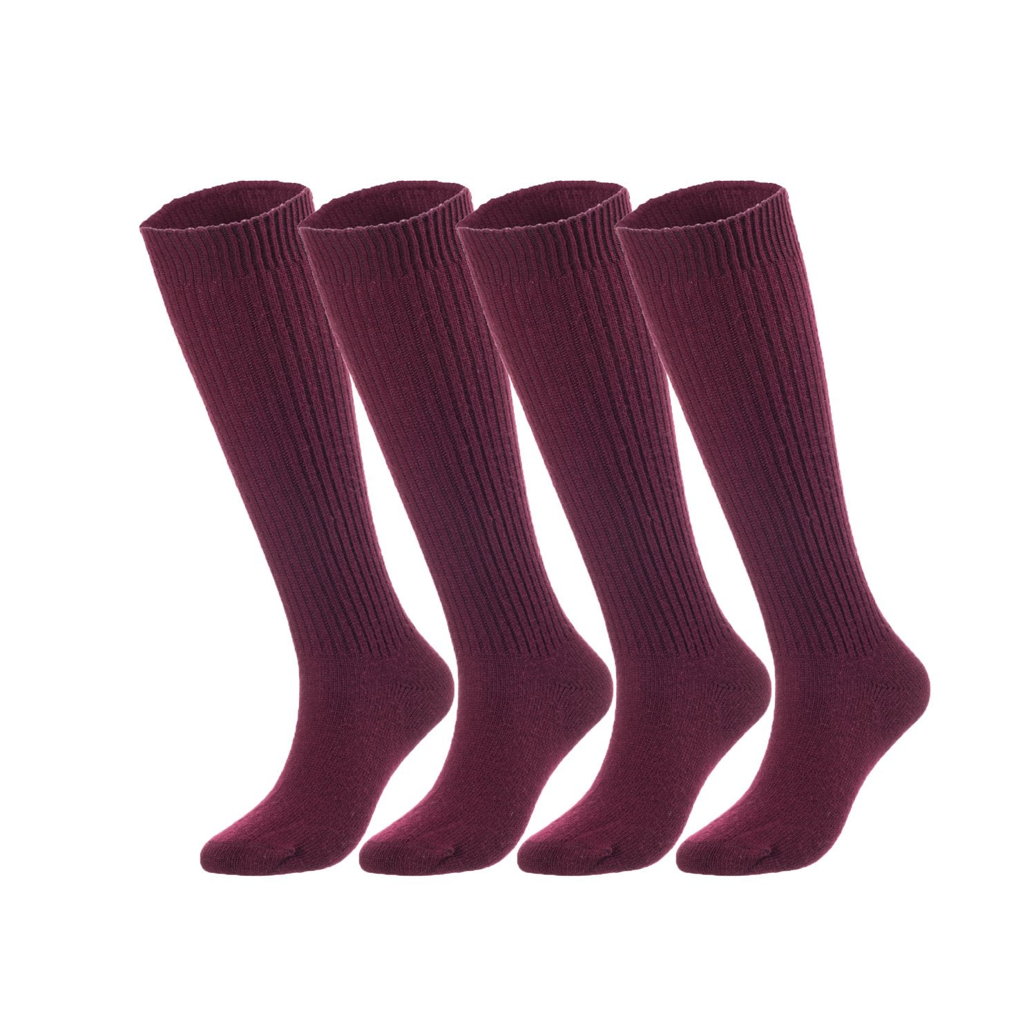 Lovely Annie Big Girl's & Women's 4 Pairs Knee High Wool Socks | Comfy, Cozy and Fancy Leg Warmer Stockings AFS05 Size L/XL(Wine)